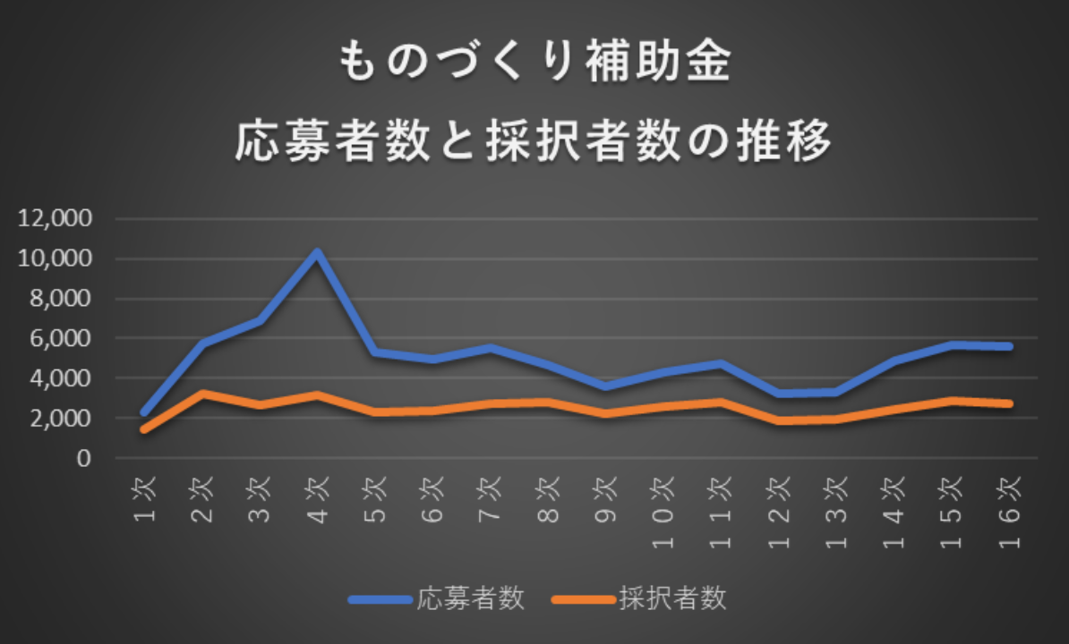今回は、「第16次ものづくり補助金の採択率」についてになります。