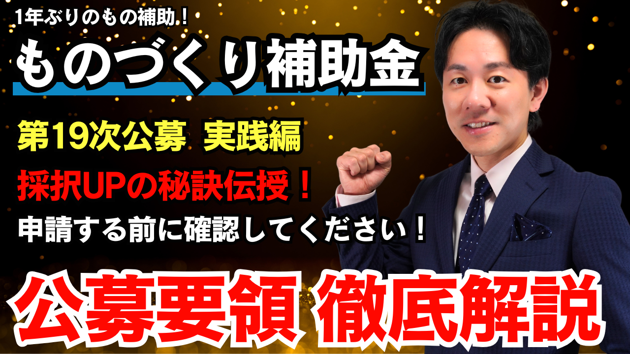 今回は「【ものづくり補助金】1年ぶりに復活した第19次公募を徹底解説!」の動画投稿についてになります。