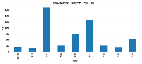 図1 地域ブロック別の採択件数(独自集計)