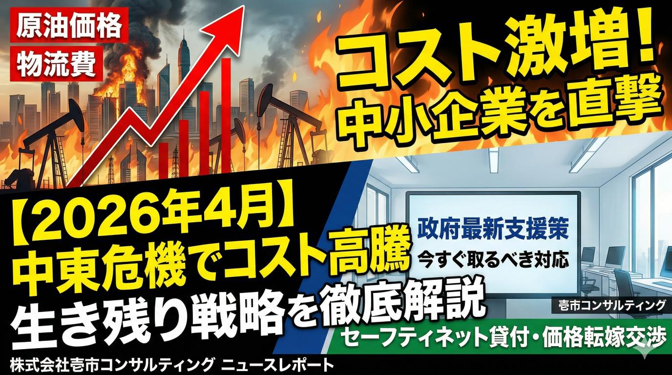 【2026年4月号】中東情勢激化で中小企業を直撃するコスト高騰|政府の最新支援策と経営者が今すぐ取るべき対応を徹底解説~株式会社壱市コンサルティング ニュースレポート