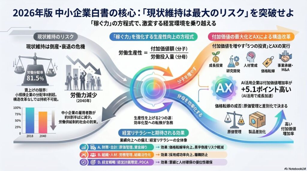 【2026年版】中小企業白書のすべて|「現状維持は最大のリスク」稼ぐ力・経営リテラシー・AXを徹底解説