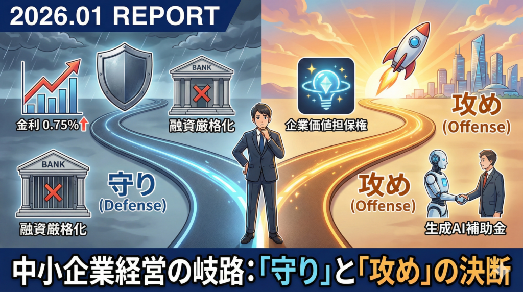 ホーム ニュースレポート ニュースレポート 【2026年版・完全解説】中小企業の経営環境はどう変わるのか 株式会社壱市コンサルティング ニュースレポート(2026年1月発行) ― 補正予算1.1兆円・金利上昇・新融資制度「企業価値担保権」まで徹底整理 ― 2026年は、中小企業にとってここ10年以上で最も経営環境が大きく変化する年にな… 2026年1月21日