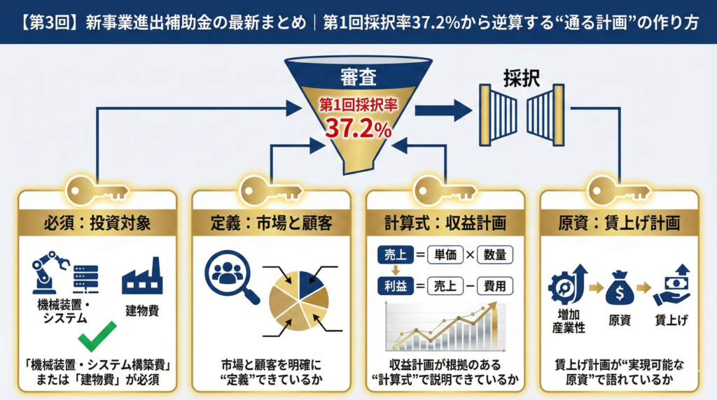 【第3回】新事業進出補助金の最新まとめ|第1回採択率37.2%から逆算する“通る計画”の作り方